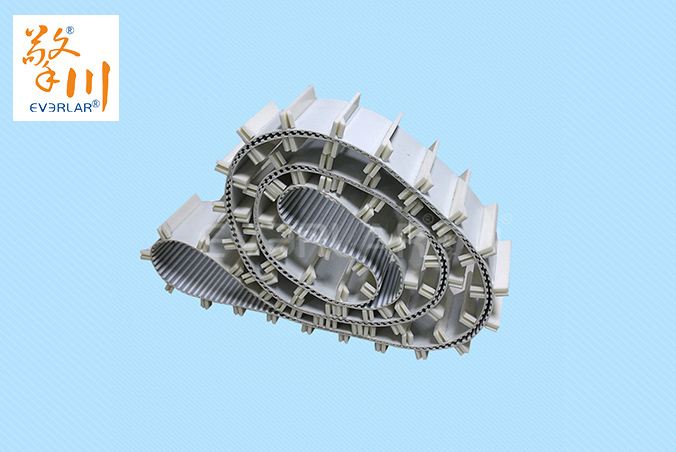 PU同步輸送帶加擋塊具有抗油、防水、防粘、抗拉、耐化學腐蝕、耐磨耐用的特性