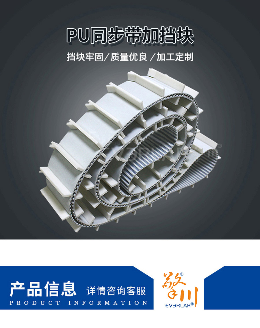 擎川同步帶廠家直銷PU同步輸送帶加擋板,可按客戶要求定制各種帶附件同步帶,可加勻稱直角/傾斜擋塊、加螺母、加PU膠、發(fā)泡膠、海綿等各種特殊加工定制,需提供圖紙,按圖紙加工生產(chǎn),品質(zhì)保障,超長質(zhì)保和免費技術支持,如有需要,歡迎在線咨詢或來電:153-6054-1513!