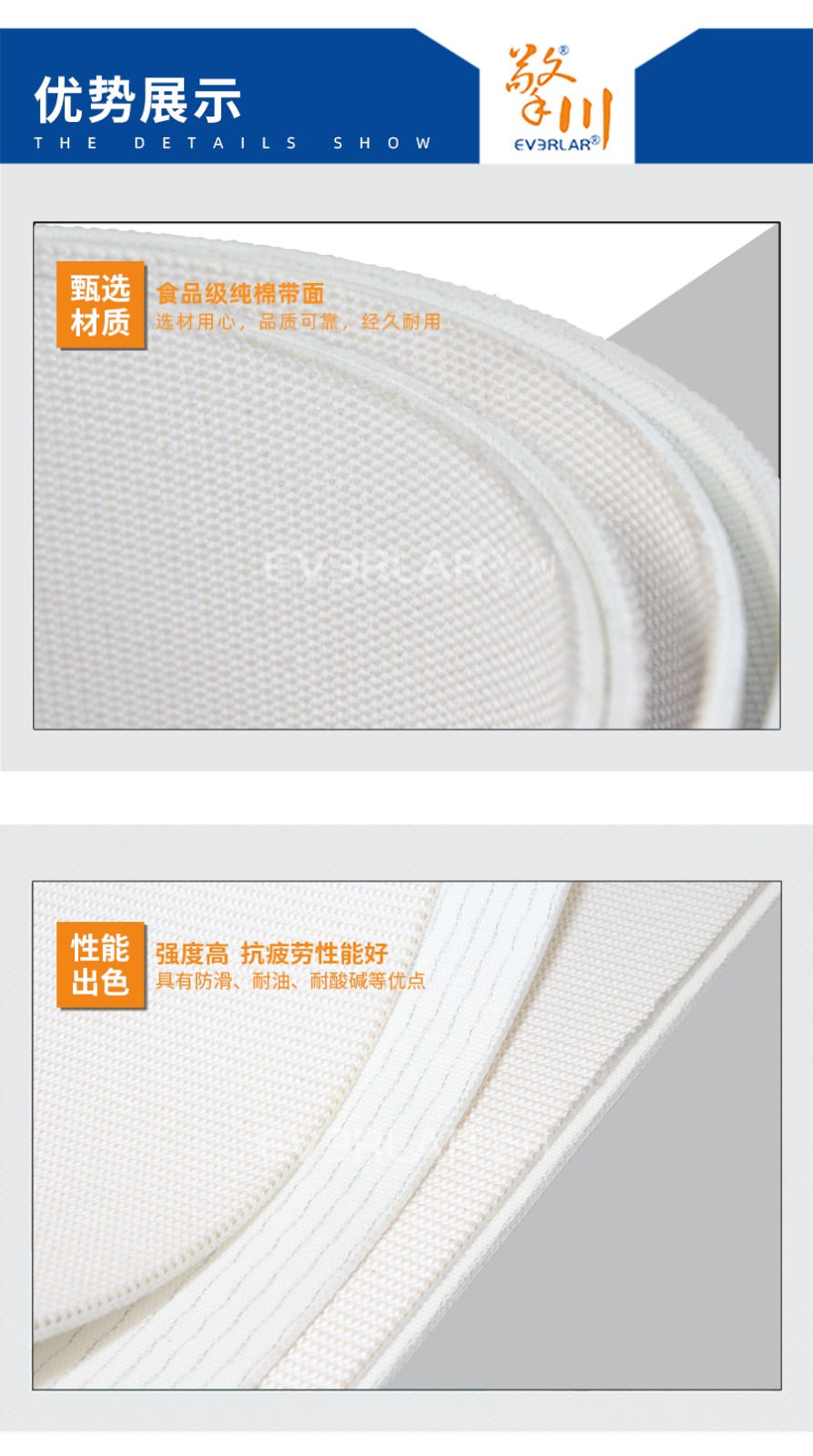 產(chǎn)品名稱(chēng):everlar擎川定制粗面帆布白色純棉/pvc輸送帶食品級(jí)輸送帶