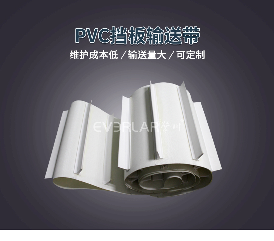 本樣品是食品PVC輸送帶加擋板,材質(zhì)為聚氯乙烯(Polyvinylchloride,PVC),其構(gòu)成為聚酯纖維布和聚氯乙烯膠構(gòu)成。EVERLAR擎川提供pvc輸送帶加裙邊,加擋板,加導(dǎo)條,有大量現(xiàn)貨,特殊產(chǎn)品可定做,采用高周波工藝加工輸送帶裙邊、擋板、導(dǎo)條等,外表美觀、堅固不開裂、可媲美皮帶!我們嚴格按照國家標(biāo)準,對照國際先進標(biāo)準進行生產(chǎn)。