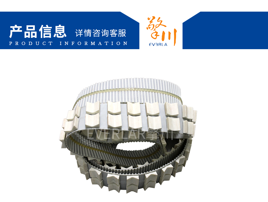 本樣品工業(yè)皮帶為PU食品同步帶。此同步帶經(jīng)過特殊加工,在皮帶上每排加異型擋板,主要用于產(chǎn)品定位,方便機(jī)械手操作,形狀可以根據(jù)客戶要求定制;我公司的工業(yè)皮帶長度和寬度可根據(jù)客戶要求定制,表面可加導(dǎo)條,和異性擋板,我公司生產(chǎn)的同步帶接口牢固,美觀,擋板牢固,是各個(gè)行業(yè)機(jī)械中重要的配件。