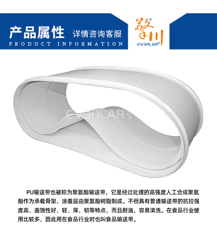 PU輸送帶也被稱為聚氨酯輸送帶,它是經(jīng)過(guò)處理的高強(qiáng)度人工合成聚氨酯作為承載骨架,涂覆層由聚氨酯樹(shù)脂制成。不但具有普通輸送帶的抗拉強(qiáng)度高、曲饒性好、輕、薄、韌等特點(diǎn),而且耐油,容易清洗。在食品行業(yè)使用比較多,因此用在食品行業(yè)時(shí)也叫食品輸送帶。