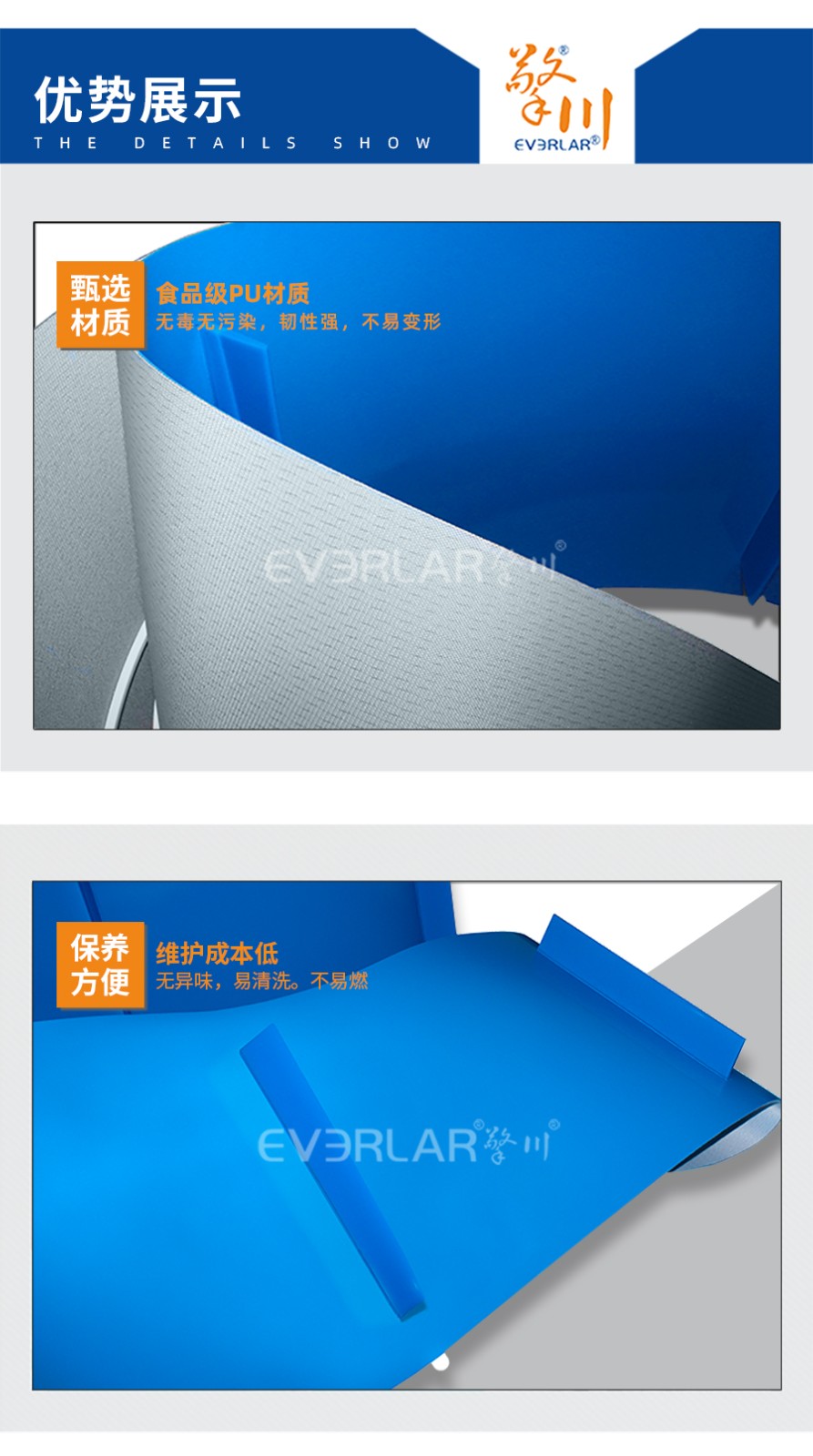 產(chǎn)品名稱:藍(lán)色PU輸送帶加擋板