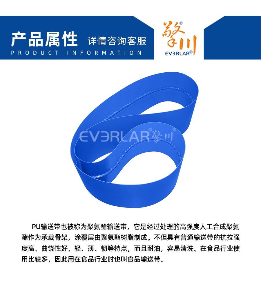 PU輸送帶也被稱為聚氨酯輸送帶,它是經(jīng)過處理的高強度人工合成聚氨酯作為承載骨架,涂覆層由聚氨酯樹脂制成。不但具有普通輸送帶的抗拉強度高、曲饒性好、輕、薄、韌等特點,而且耐油,容易清洗。在食品行業(yè)使用比較多,因此用在食品行業(yè)時也叫食品輸送帶。