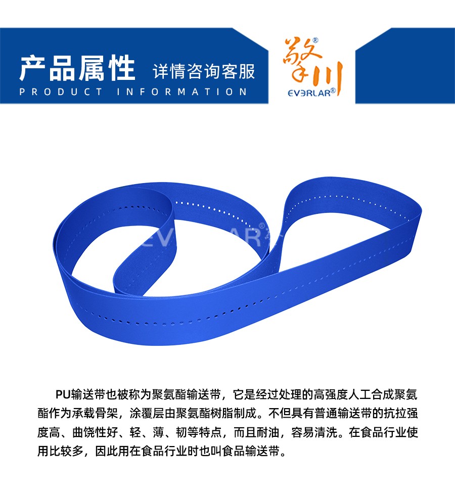 產(chǎn)品名稱:藍(lán)色PU食品輸送帶打孔