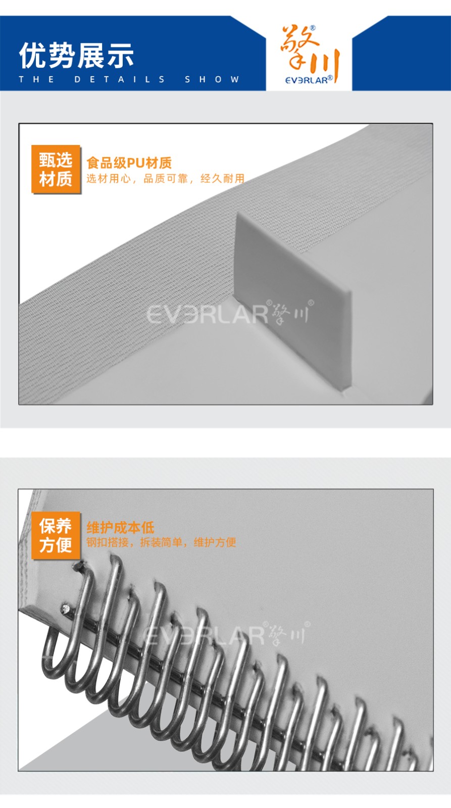 | 樣品名稱 | PU輸送帶加擋板打鋼扣 | 接駁方式 | 鋼扣搭接 |