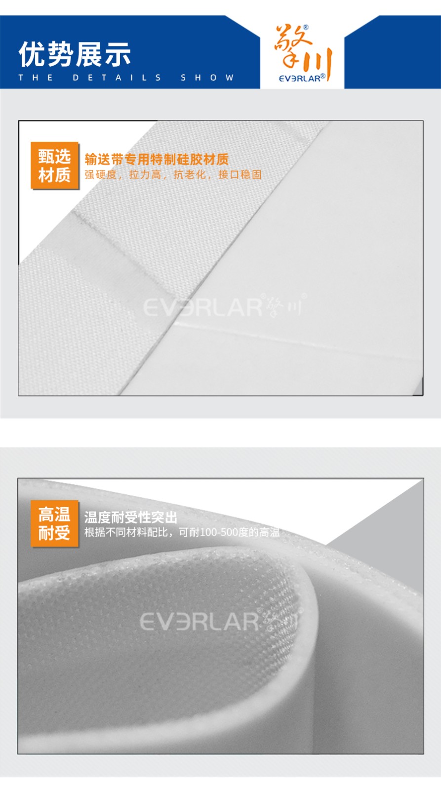 備注:耐高溫硅膠輸送帶圖片只是某一種加工后的樣式,可根據(jù)您生產(chǎn)的需要加工成其他的樣式,屬于非標(biāo)產(chǎn)品(定制加工后不支持退換服務(wù)),報(bào)價(jià)僅供參考,詳細(xì)可直接聯(lián)系客服。