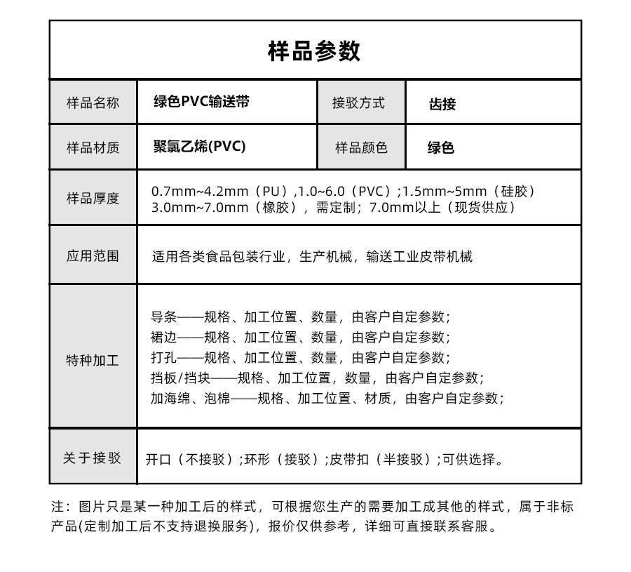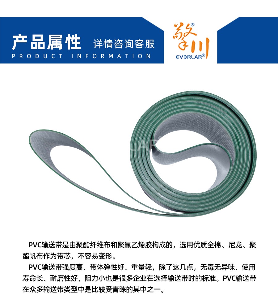 • 產(chǎn)品名稱:PVC輸送帶綠色運輸帶耐磨阻力小無異味有彈性