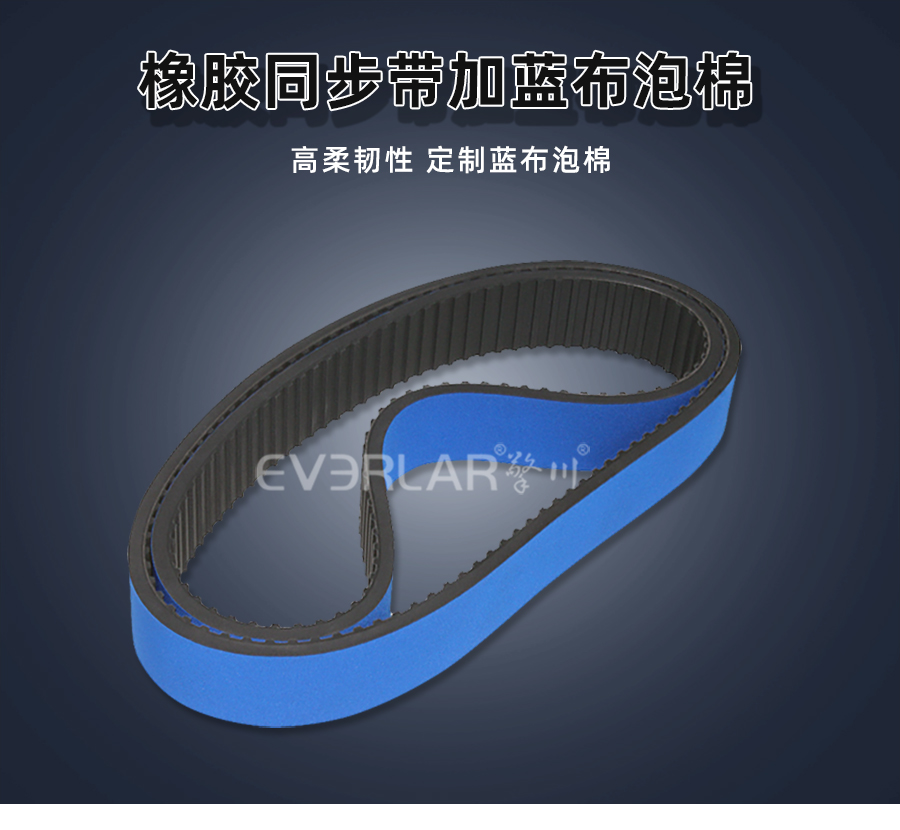 產(chǎn)品名稱:擎川everlar定制橡膠同步帶加藍(lán)色泡棉夾瓶機(jī)貼標(biāo)機(jī)傳動(dòng)帶