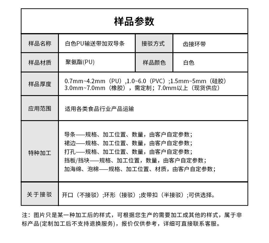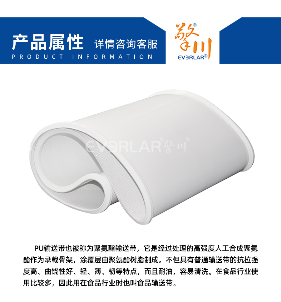 產(chǎn)品名稱(chēng):擎川everlar定制白色加雙導(dǎo)條聚氨酯PU食品輸送帶