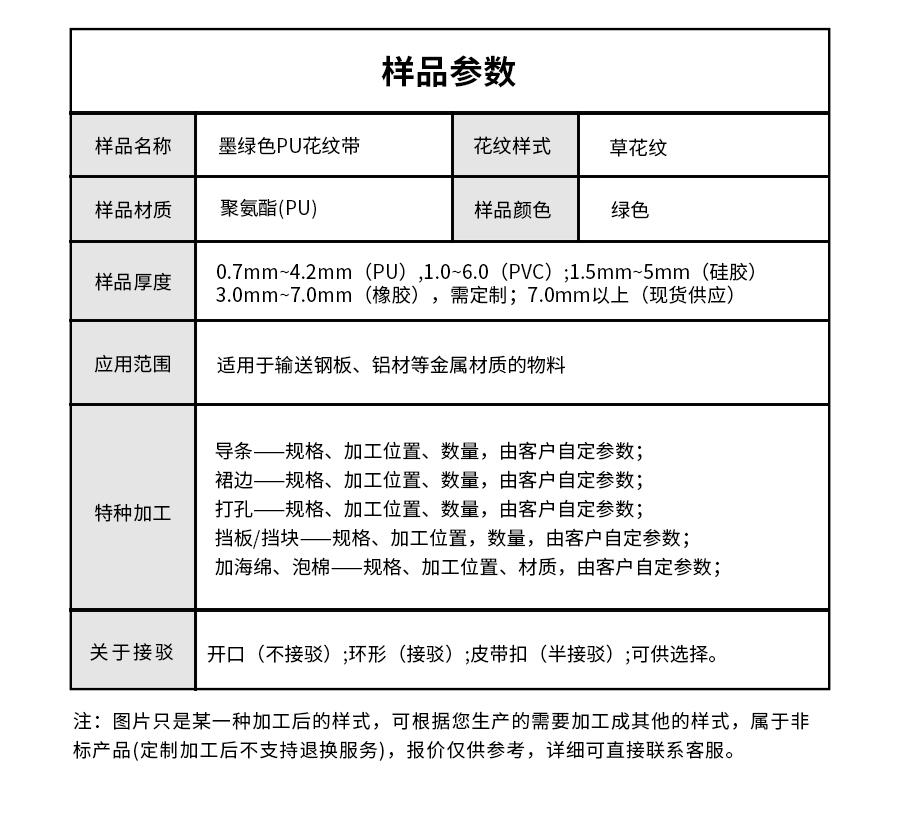 產(chǎn)品名稱:墨綠色PU輸送帶花紋食品輸送帶定制加工