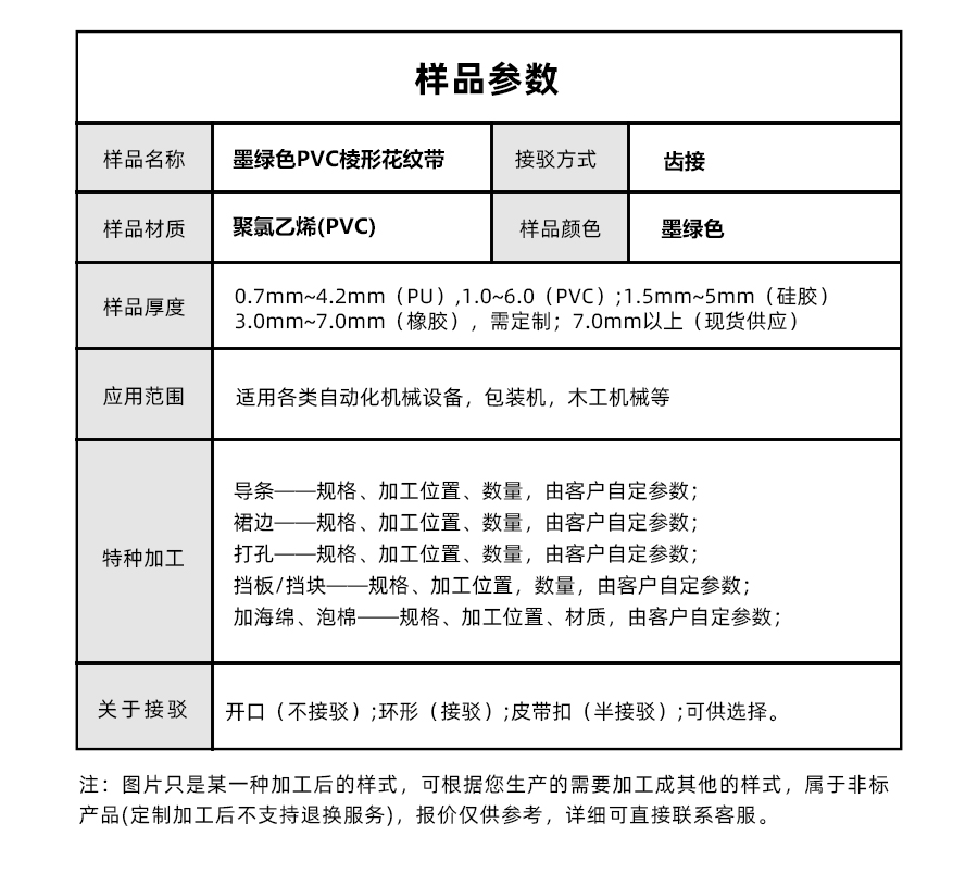 • 產(chǎn)品名稱:墨綠色PVC輸送帶耐磨防滑食品輸送帶工業(yè)皮帶