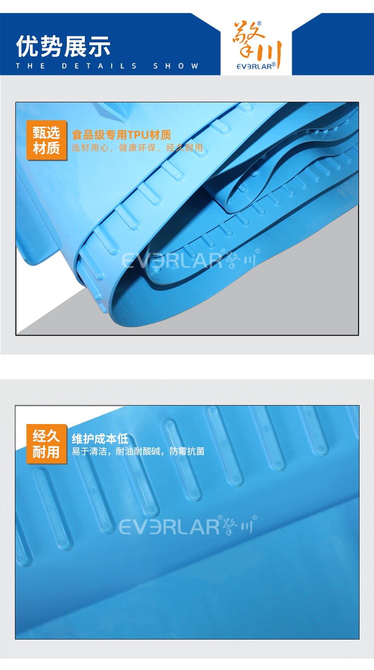 雙面藍(lán)色鉆紋PU輸送帶耐磨耐油食品級(jí)工業(yè)皮帶定制