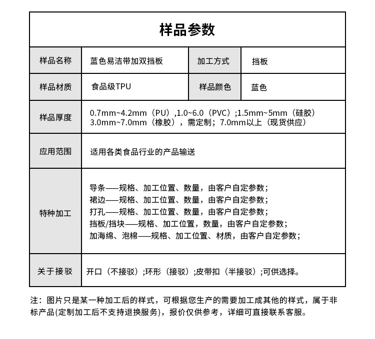 產(chǎn)品名稱:易清潔食品級(jí)輸送帶易潔皮帶肉類行業(yè)機(jī)械設(shè)備工業(yè)皮帶