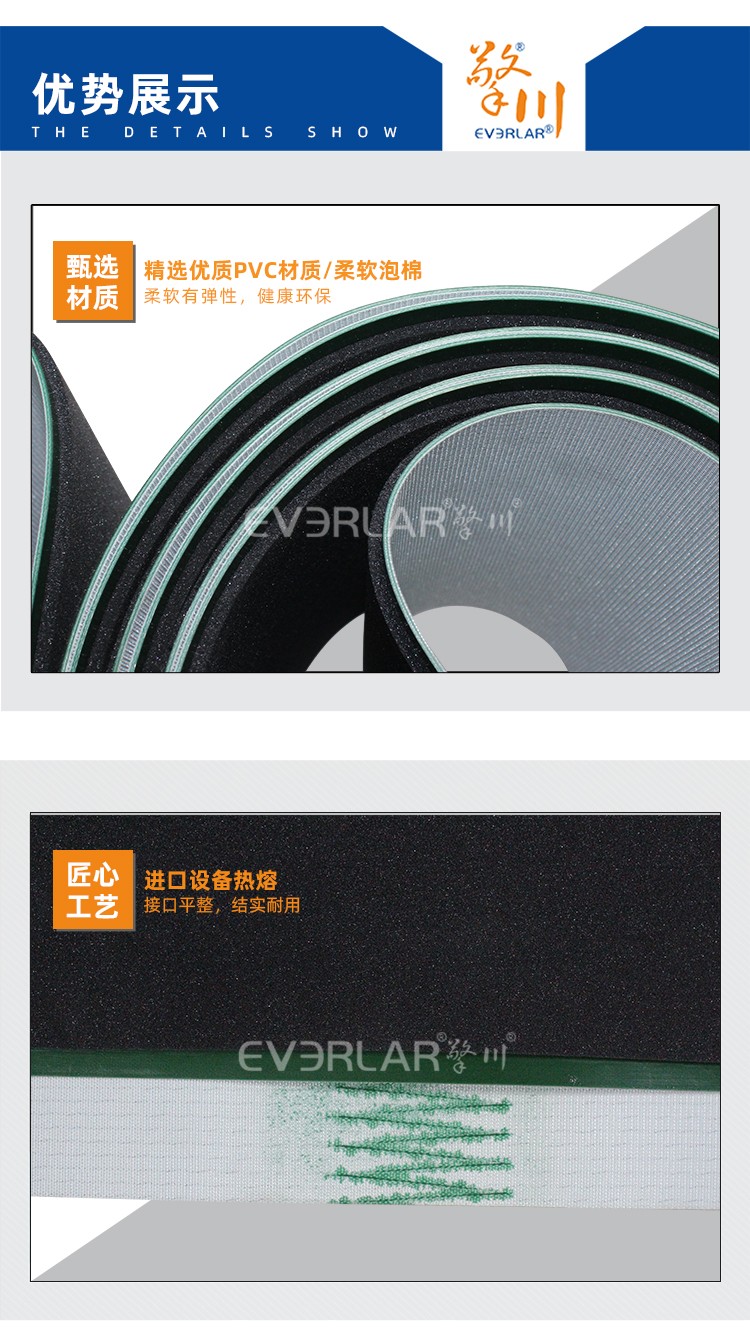 綠色PVC輸送帶加黑色泡棉耐磨耐腐蝕食品加工機械工業(yè)皮帶定制