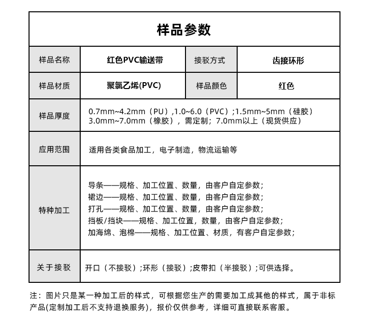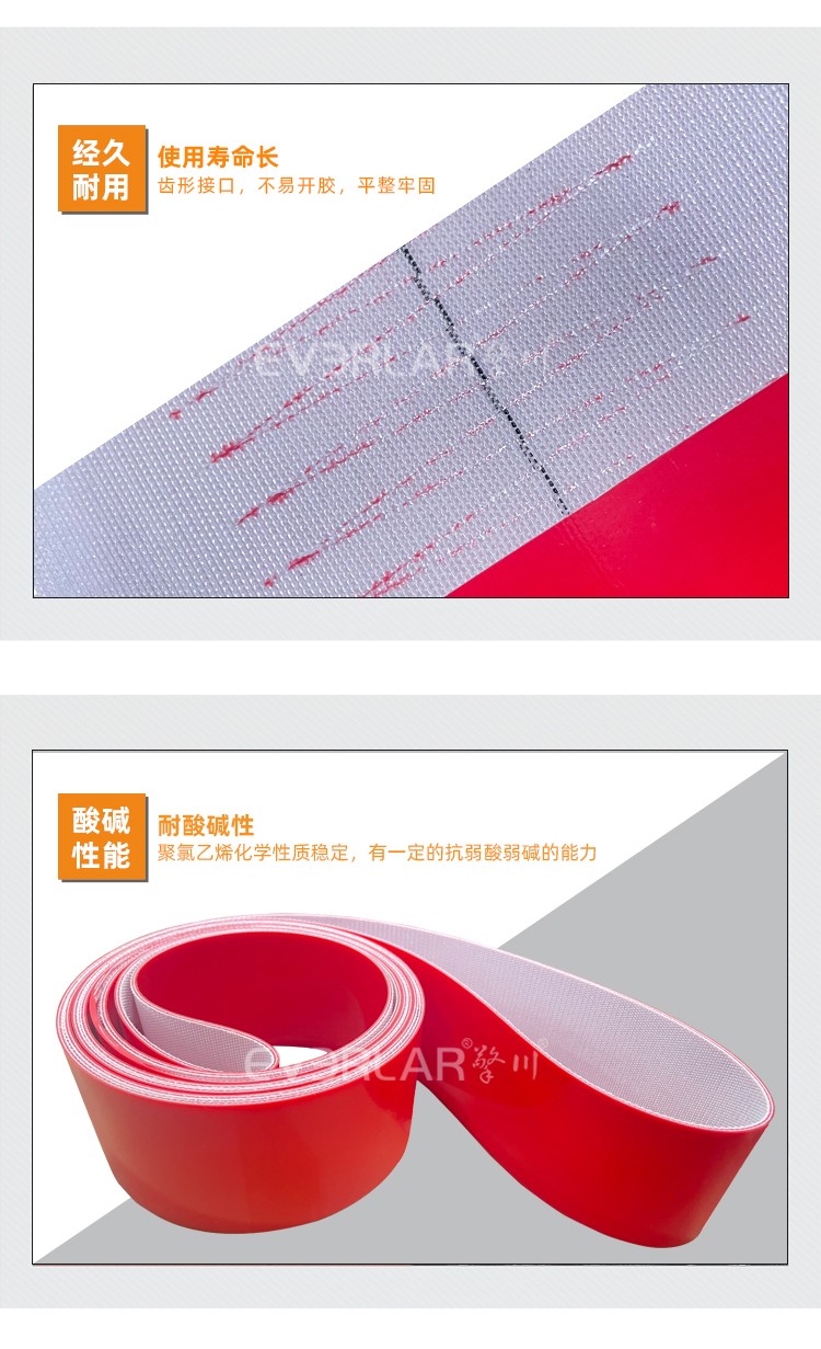 產(chǎn)品名稱:紅色PVC輸送帶耐磨耐腐蝕食品級(jí)工業(yè)皮帶定制