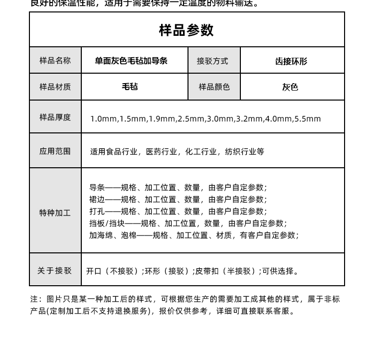 產(chǎn)品名稱:單面灰色毛氈輸送帶加導(dǎo)條耐磨耐高溫耐切割工業(yè)皮帶
