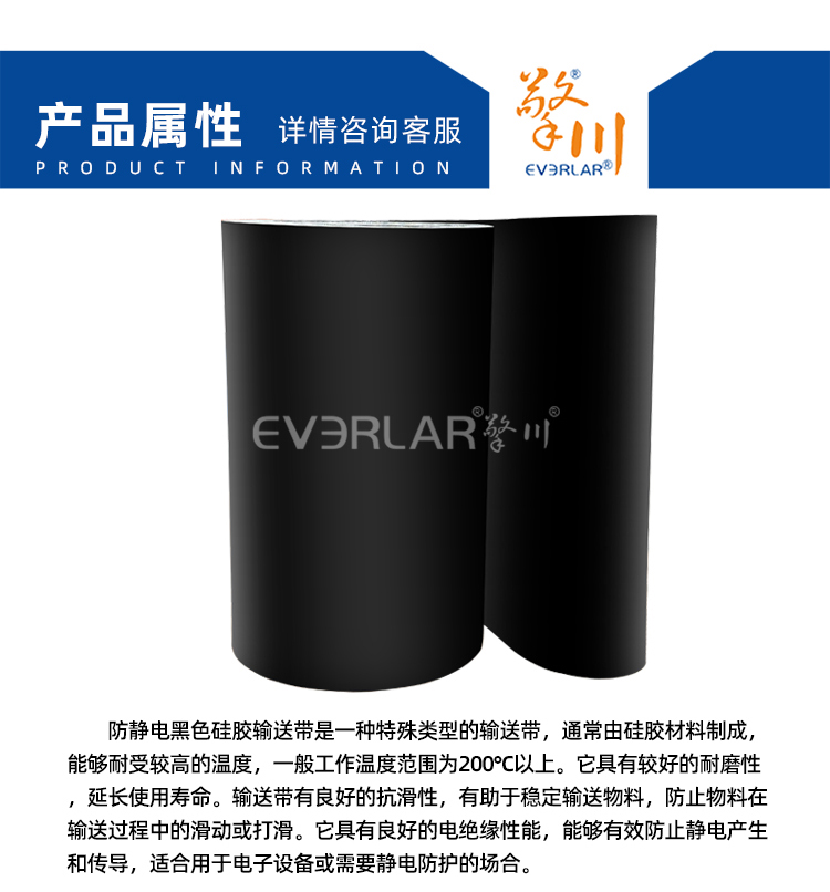 • 產(chǎn)品名稱:防靜電黑色硅膠輸送帶防粘耐高溫防靜電工業(yè)皮帶
