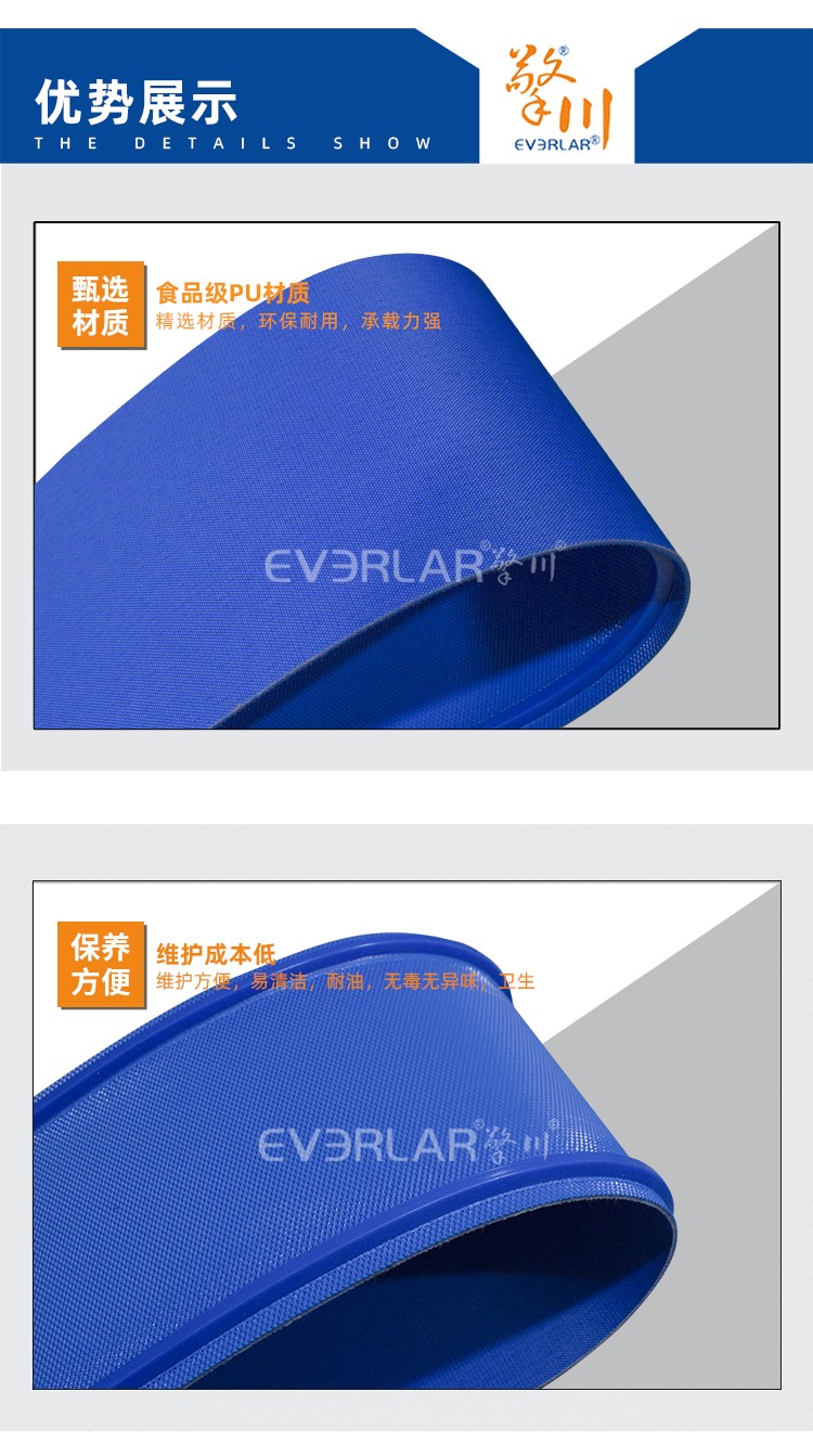 • 產(chǎn)品名稱:藍色PU鉆紋加導條耐磨防滑耐腐蝕工業(yè)皮帶