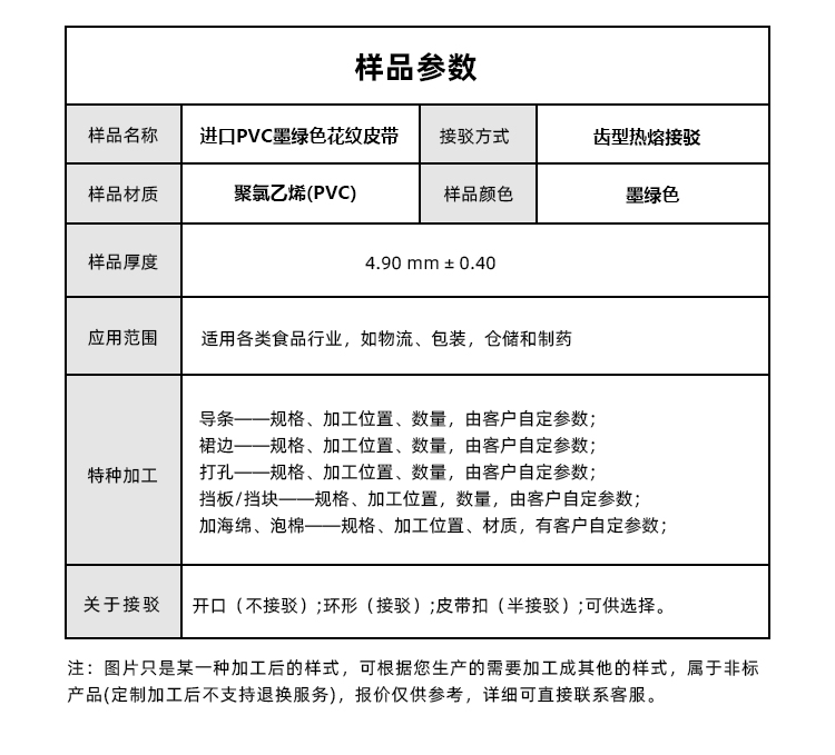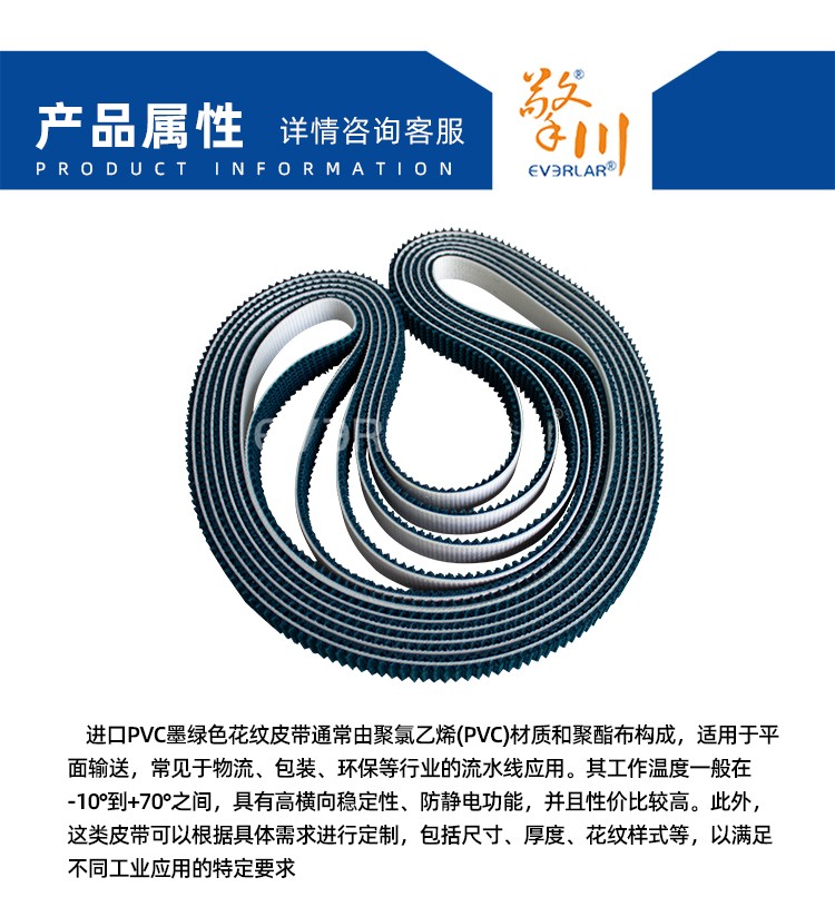 • 產(chǎn)品名稱:進口PVC墨綠色花紋皮帶耐磨防滑耐腐蝕工業(yè)皮帶