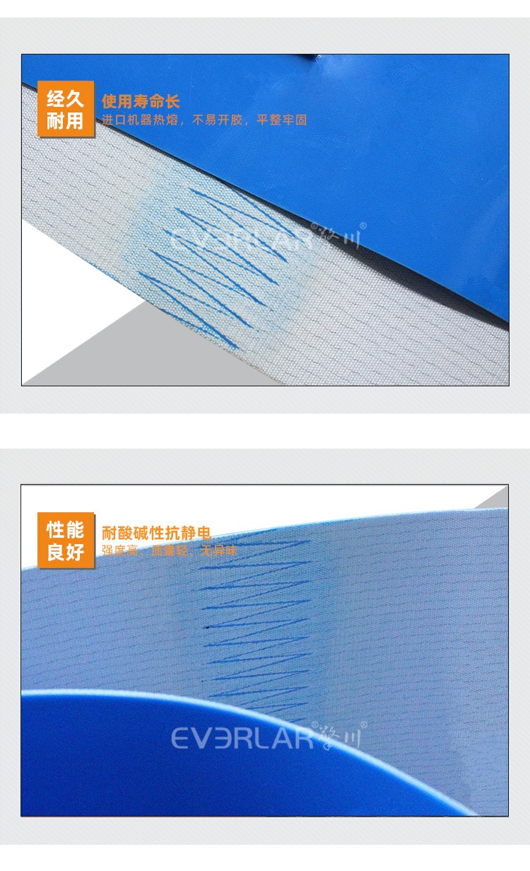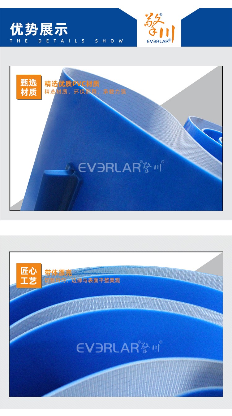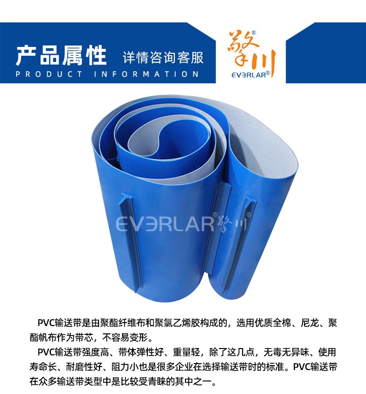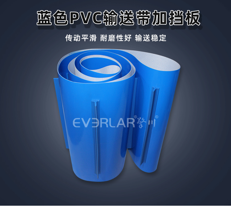 • 產(chǎn)品名稱:藍色PVC輸送帶加擋塊耐磨抗拉強度耐腐蝕工業(yè)皮帶