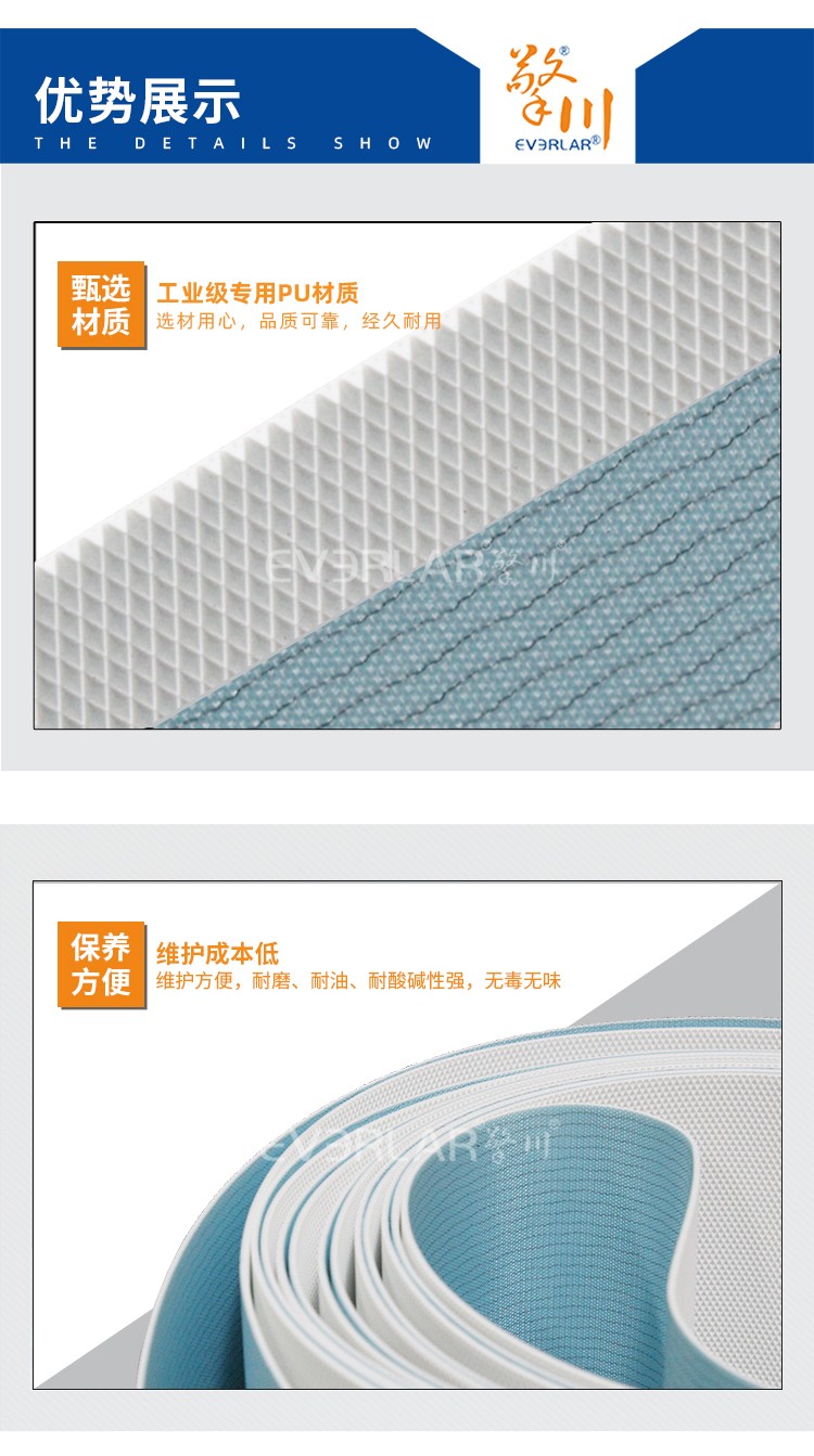 • PU藍(lán)白鉆紋輸送帶耐磨耐油耐腐蝕工業(yè)皮帶定制