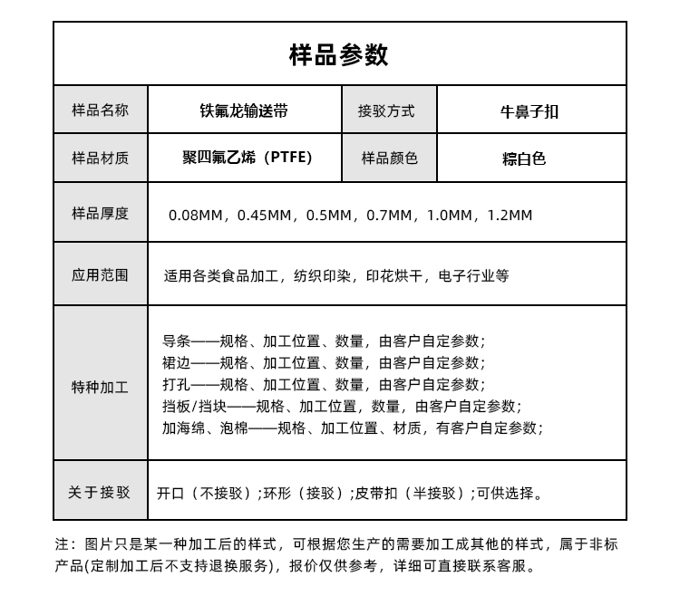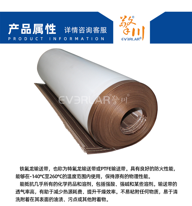 產(chǎn)品名稱:鐵氟龍輸送帶耐磨耐腐蝕耐高溫工業(yè)皮帶定制