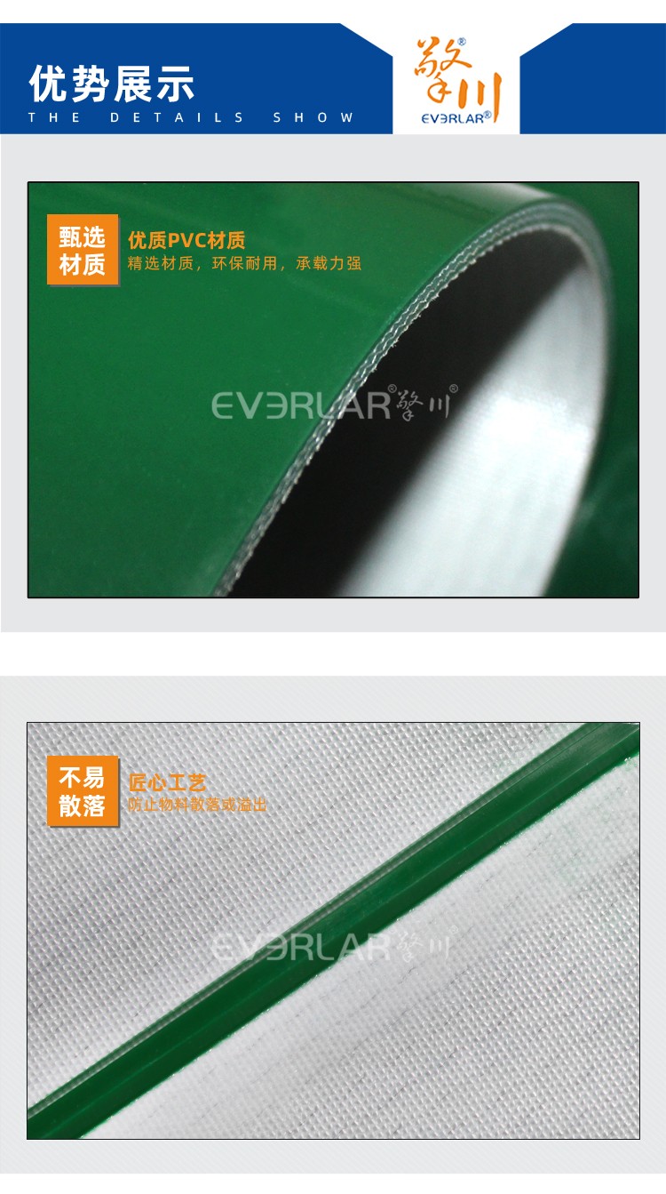雙面纖維輸送帶綠色加導(dǎo)條防偏移包裝行業(yè)物料傳送皮帶定制