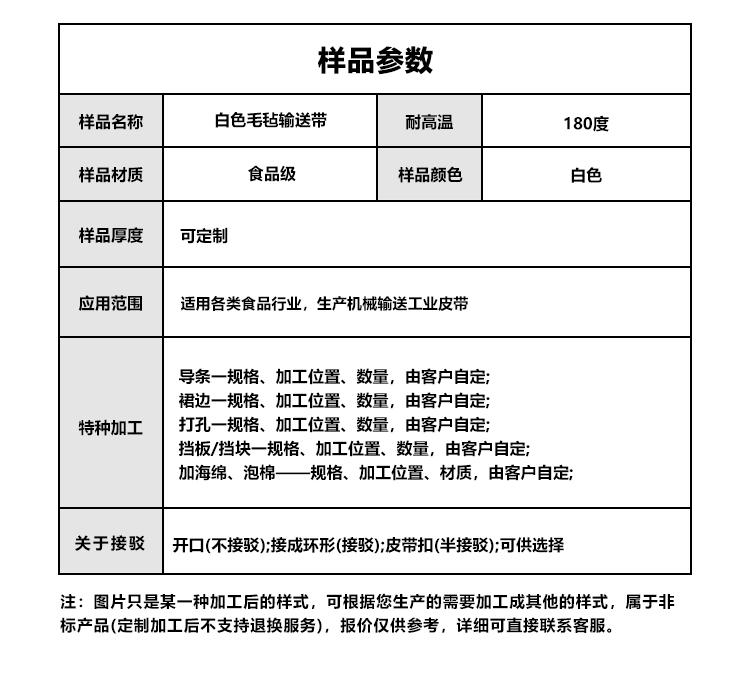 • 產(chǎn)品名稱:食品級毛氈輸送帶 柔軟耐磨傳送帶 食品加工生產(chǎn)線專用 擎川定制