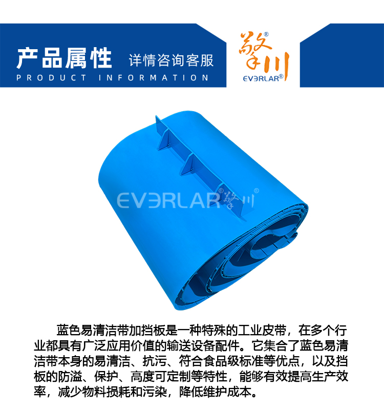 • 產(chǎn)品名稱:易清潔TPU加擋板輸送帶藍色食品級防溢抗污生產(chǎn)線設(shè)備傳送帶