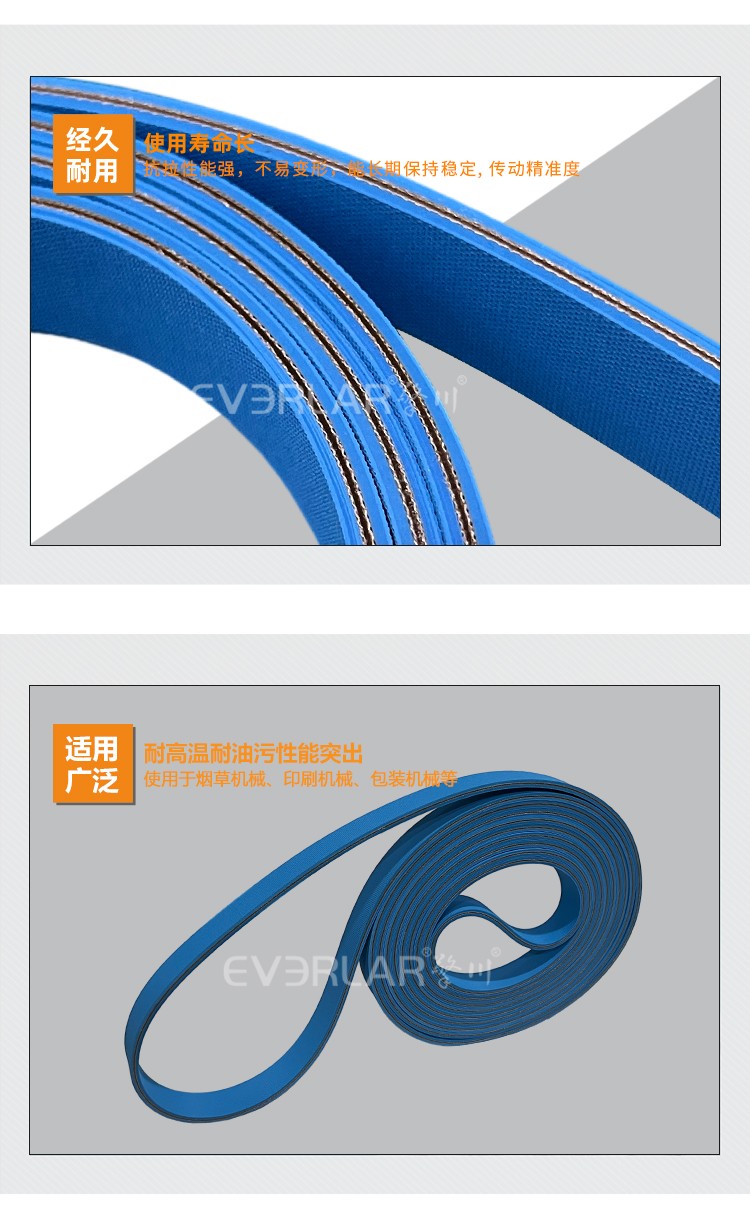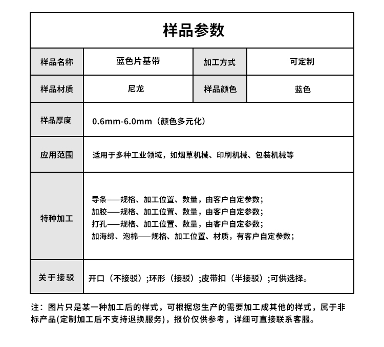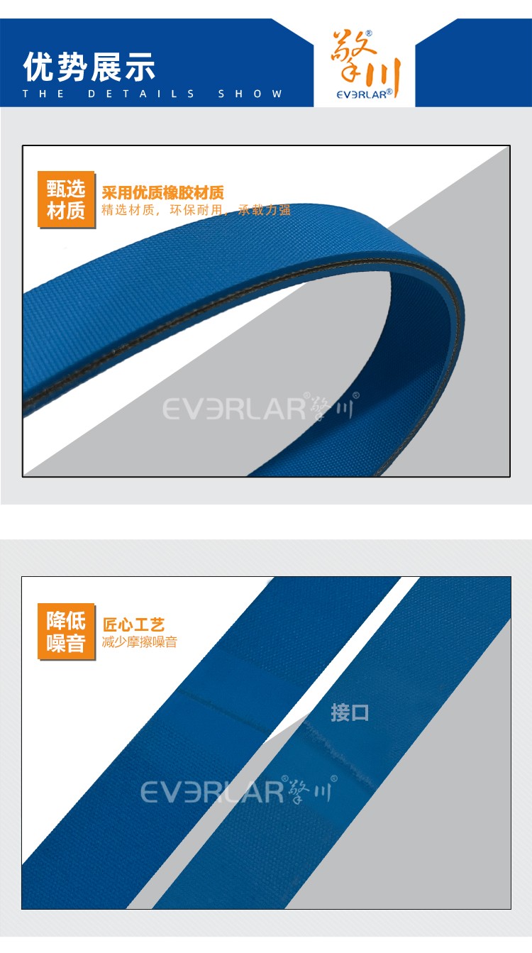 產(chǎn)品名稱:藍(lán)色尼龍片基帶低噪音防滑物流包裝行業(yè)折盒機(jī)傳動(dòng)帶廠家直供
