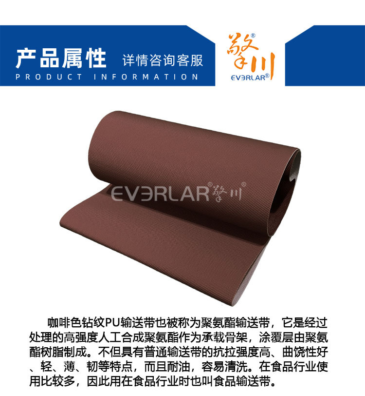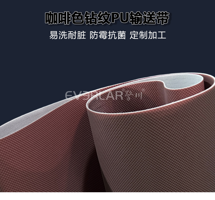 • 產品名稱:PU輸送帶咖啡色鉆石紋耐磨防滑食品烘焙輸送機聚氨酯傳送帶廠家
