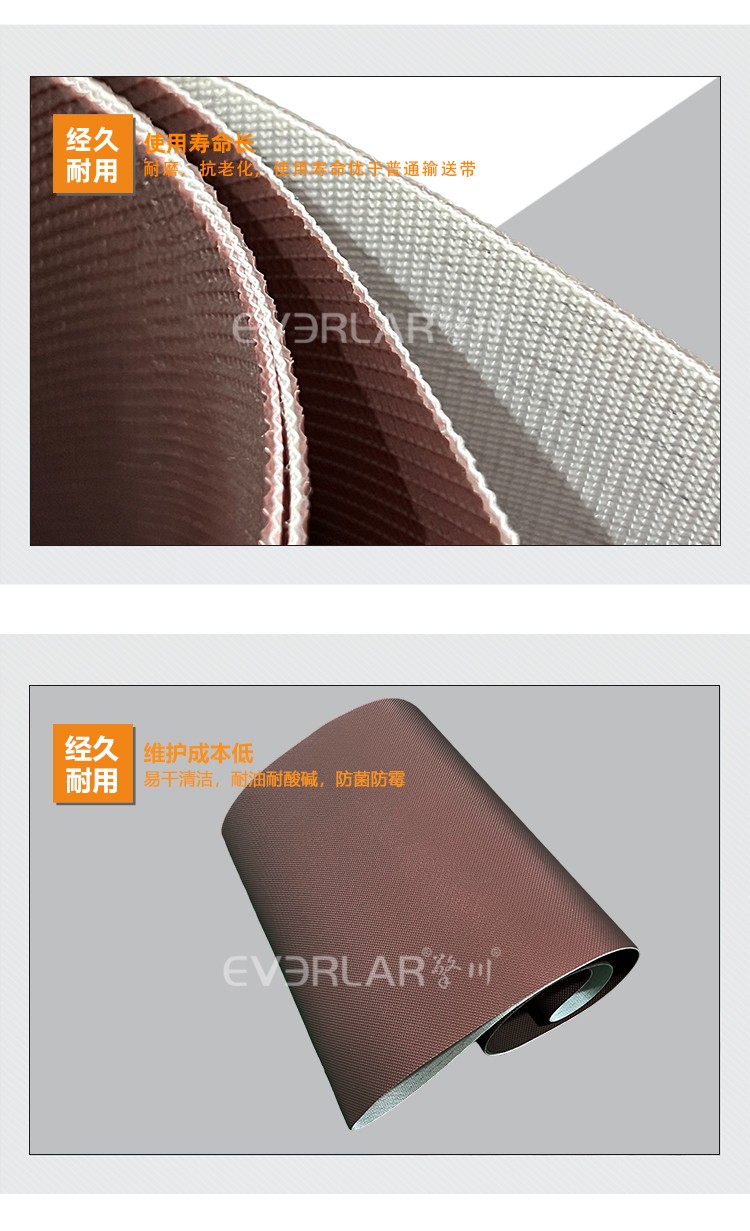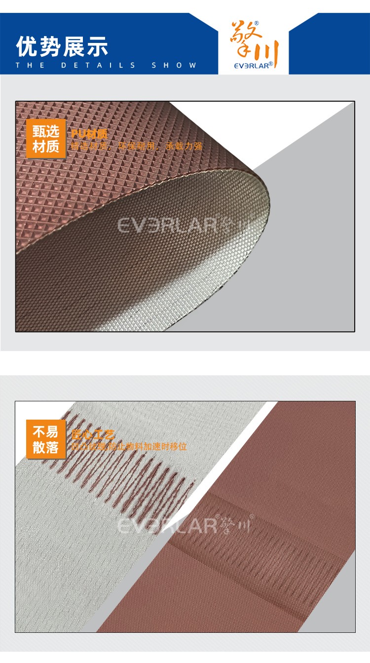 • 抗拉強度高、曲饒性好、輕薄韌、耐磨耐油、易清洗、防滑