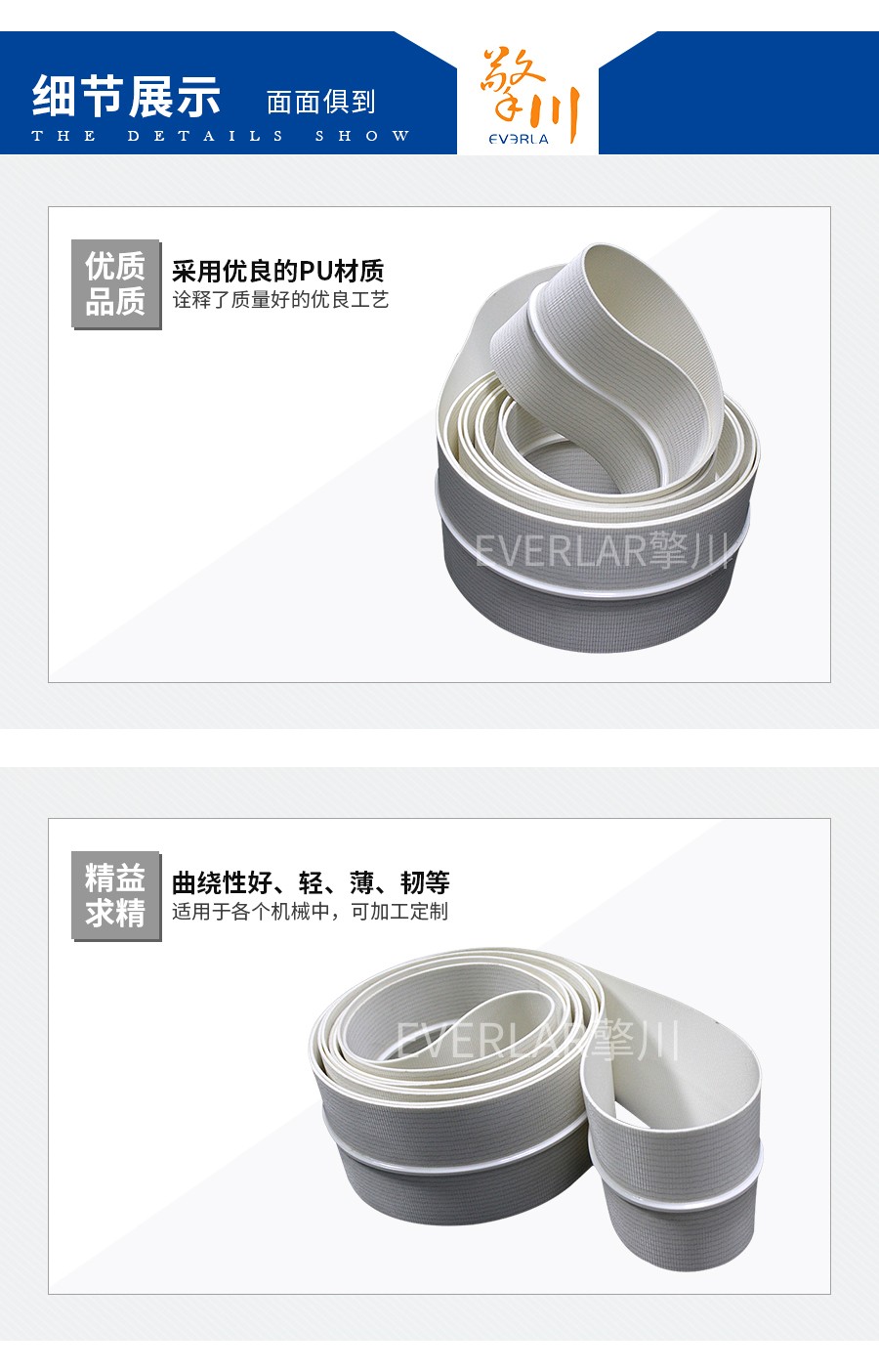 廣州擎川機(jī)電設(shè)備有限公司成立于2007年, 創(chuàng)立自有品牌EVERLAR,是一家集合研制、設(shè)計(jì)、加工為一體的工業(yè)皮帶特殊加工公司,主要經(jīng)營(yíng)各類輸送帶、同步帶、平面帶、特殊皮帶加工服務(wù)(表面加工海綿、泡棉、紅膠、PU、PVC花紋、各種異形檔塊、打孔等),產(chǎn)品被廣泛應(yīng)用在食品、日化、醫(yī)藥、木工、印刷、包裝等行業(yè)……【查看更多】 |